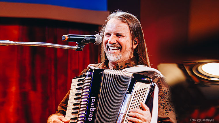 Em meio a esse repertório, Dorgival inclui a maior das mulheres na simbologia popular: a canção “Ave Maria Sertaneja”, interpretada apenas com sanfona, carregada de emoção em sua voz. É inevitável articular com a simbologia de “bendito fruto entre as mulheres”, conduzindo o projeto com sensibilidade e reverência, sem nunca tirar delas o centro da cena.